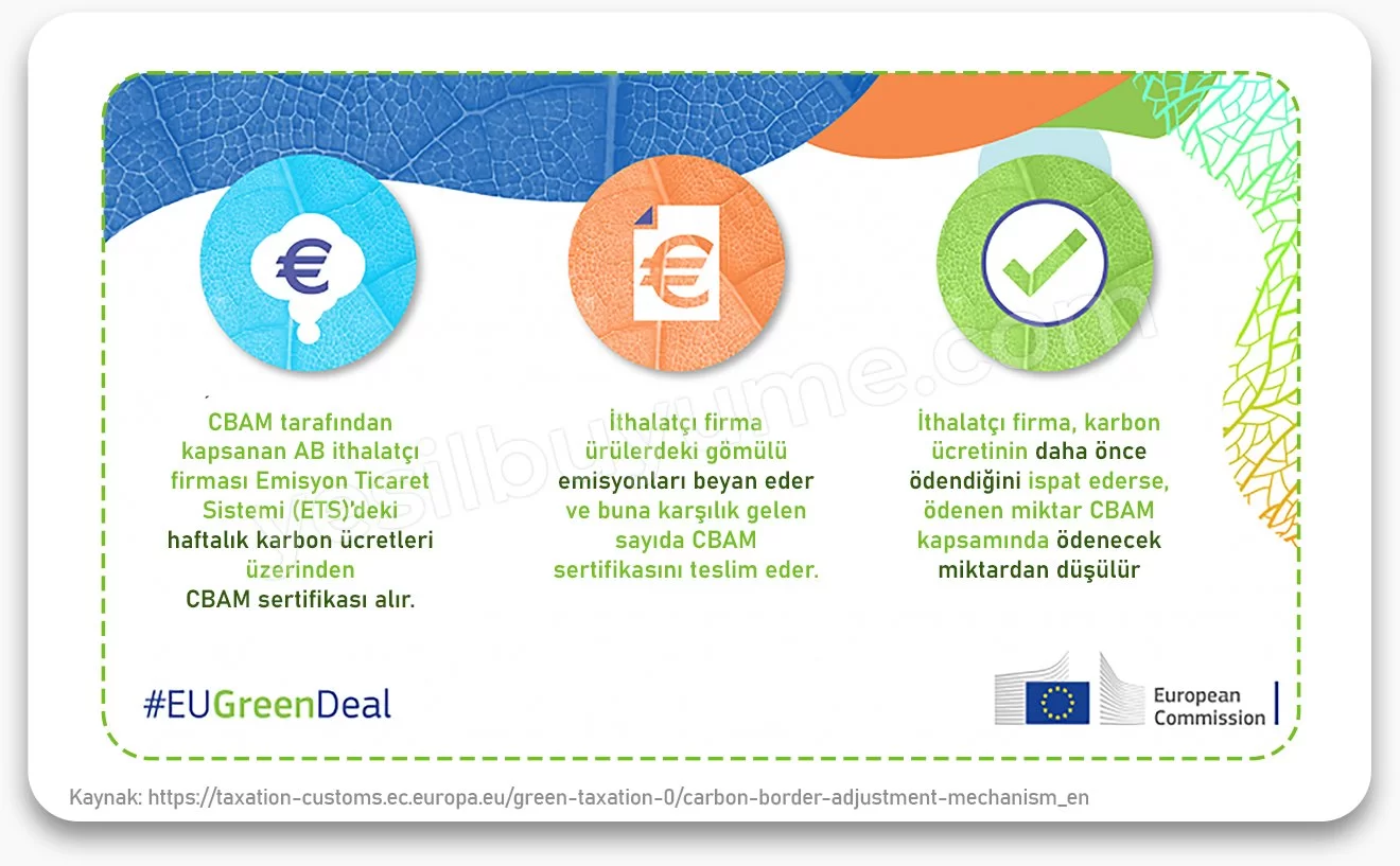 Avrupa Birliği, 2050 hedefleri arasında bulunan “karbon nötr ilk kıta” olmak amacıyla “Avrupa Yeşil Mutabakatını” oluşturdu ve bu kapsamda sınırda karbon düzenlemesi mekanizmasını uygulamaya alacak. CBAM’ın mevcut sisteme yapacağı en önemli etki belirli sektörlerdeki üreticilere bir bakıma karbon salınımı vergisi getirmektir. CBAM ile AB içerisinde ETS kapsamında üretim maliyetine tabi olan mallar ile AB dışından ithal edilen malların karbon salınım miktarına göre maliyet bakımından eşitlenmesi hedeflenmektedir.